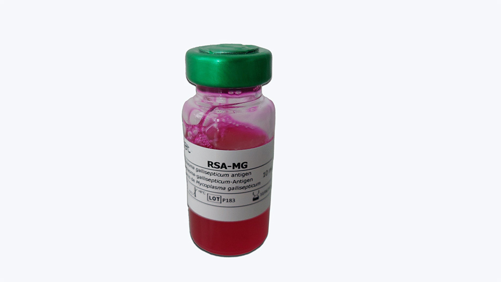 A suspension of inactivated and coloured (rose Bengal) mycoplasma gallisepticum antigens, for the detection of corresponding specific circulating antibodies in chicken and turkey for the rapid slide agglutination test (RSA).